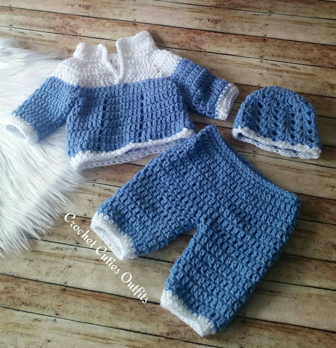 Baby Boy Crochet Set, Crochet Baby Sweater and Pants, Baby Gift
